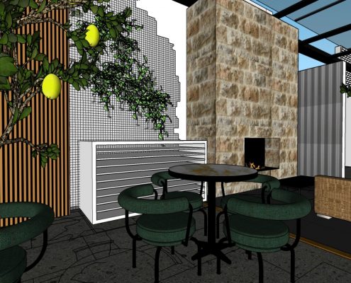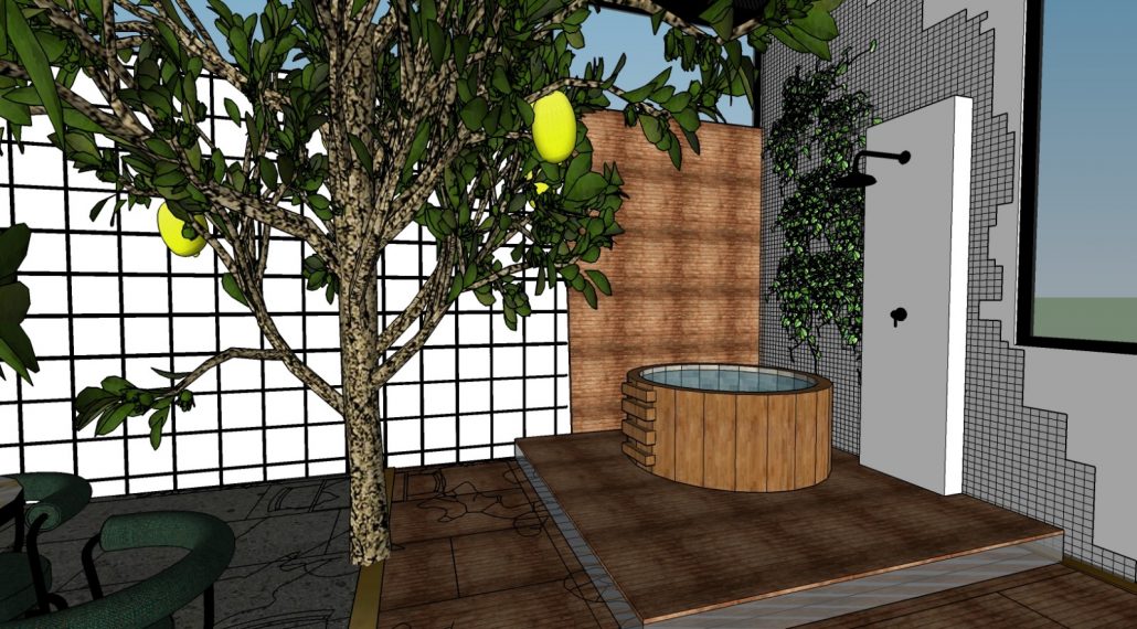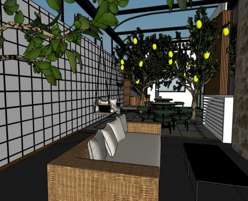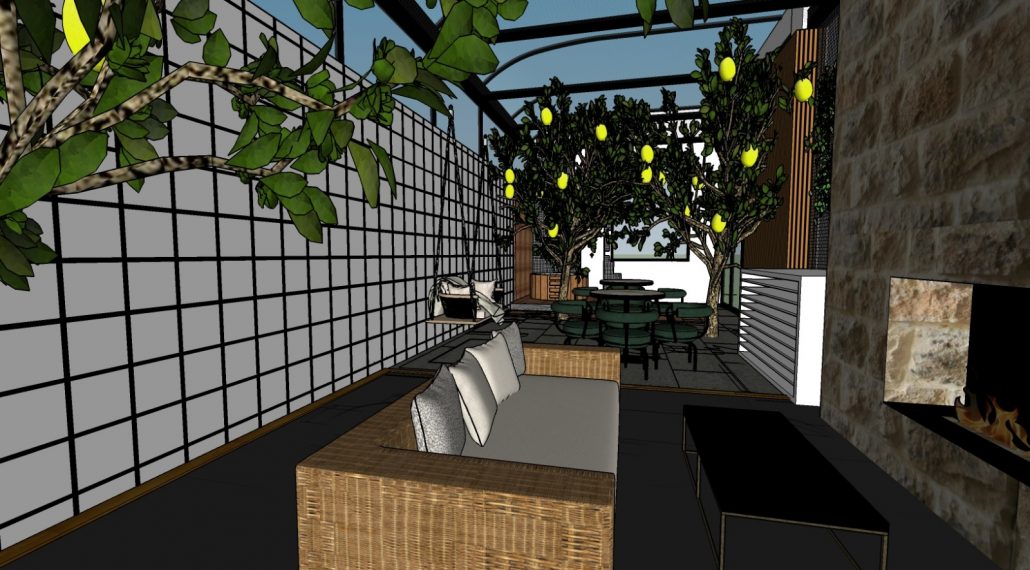גם הנושא של עיצוב נוף חיצוני הוא חלק בלתי נפרד מהעבודה, והיכולת לייצר הרמוניה בין הפנים לחוץ באה לידי ביטוי באופן מושלם כאשר עובדים יחד, צוות חוץ וצוות פנים מול הלקוח ורצונותיו.