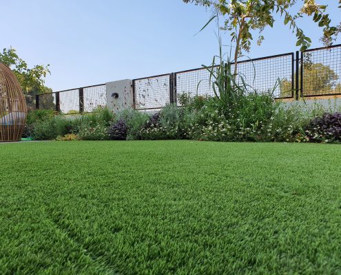 שילוב דשא סינטטי בגינה הוא פתרון נהדר עבור אלה מכם שמעוניינים במראה של דשא טבעי, אך בד בבד לא מוכנים להתמסר לטיפוח ואחזקת הדשא. כיום, תוכלו למצוא דשא סינטטי בעל מראה טבעי לחלוטין ובעל מגע רך ונעים שאיכותו אינה נופלת ממראה דשא אמיתי. המראה הירוק של הדשא נותן הרגשה של מרחב אינסופי אשר מקנה לילדיכם אפשרות לשחק או לשכב על הדשא בנוחות רבה ואף לשים את ריהוט הגן היוקרתי שלכם עליו ולהרגיש ממש כמו על מרחב דשא בפארק.